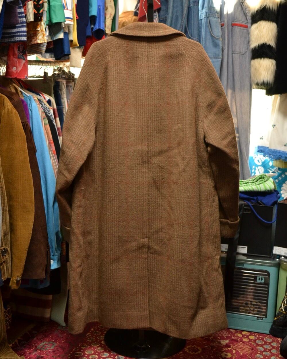 70s checked wool double coat