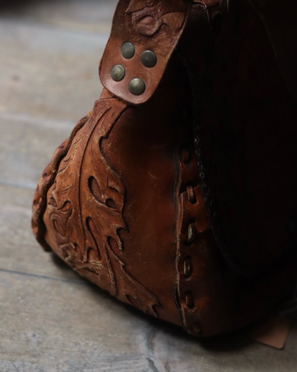 70s~ carving leather bag