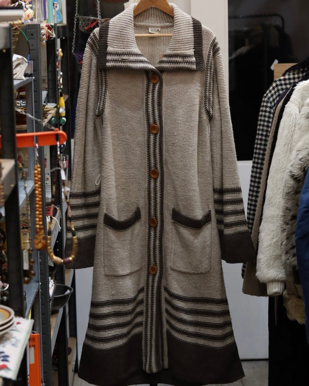 70s~ flare sleeve long knit cardigan