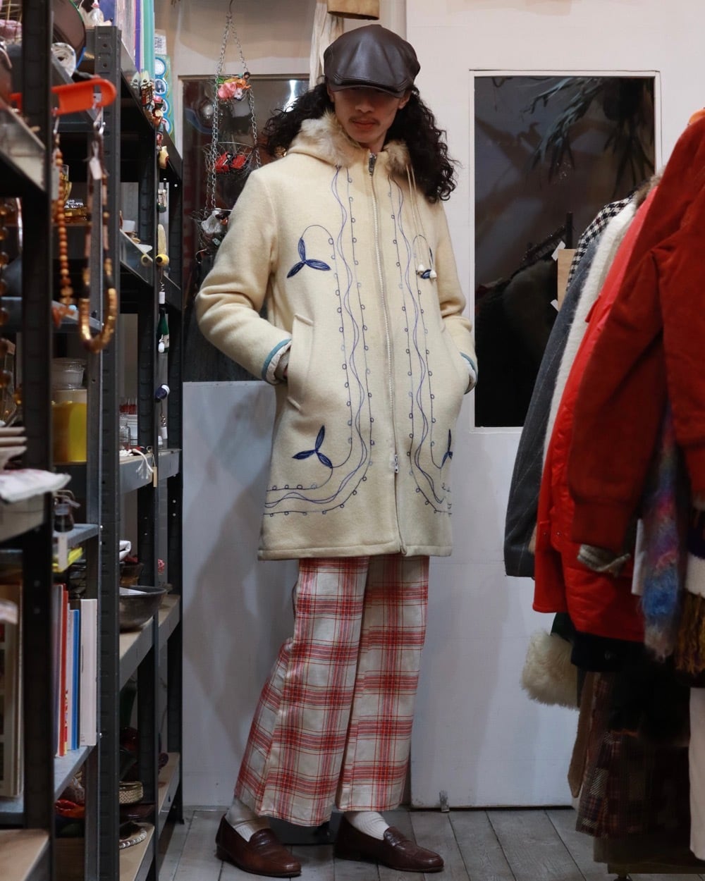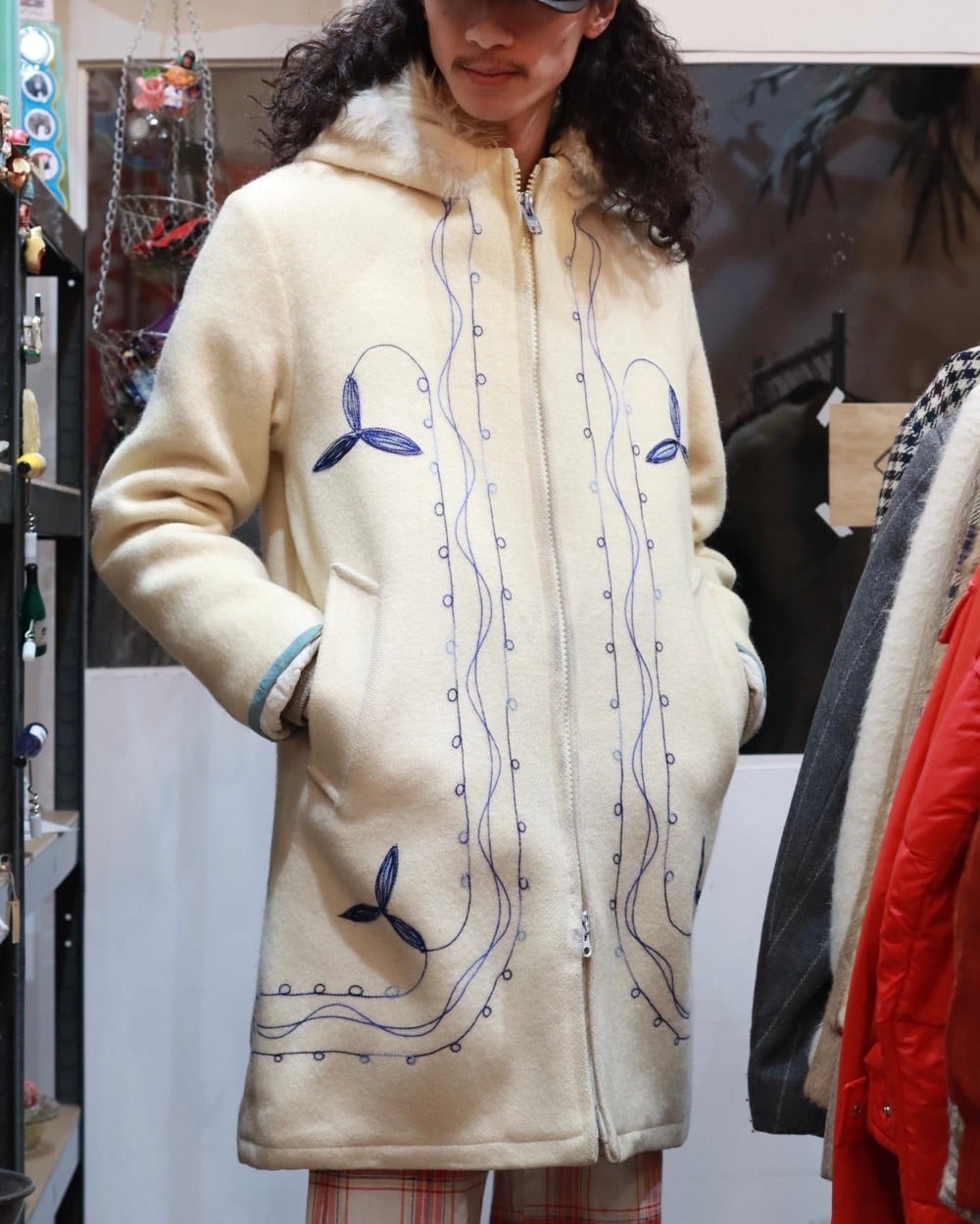 70s hoodie wool×fur coat