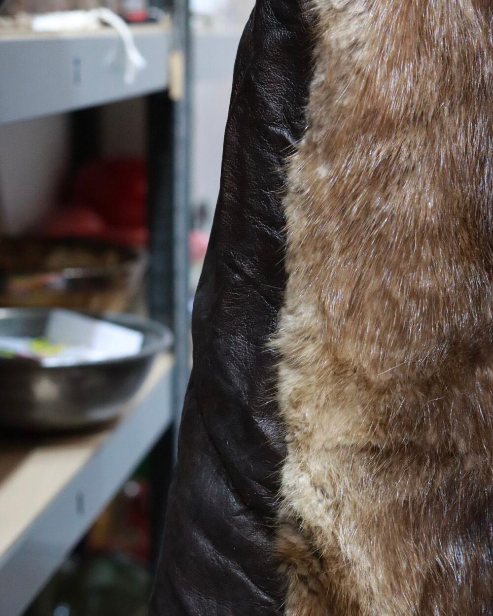 70s mink fur× leather gradation design coat