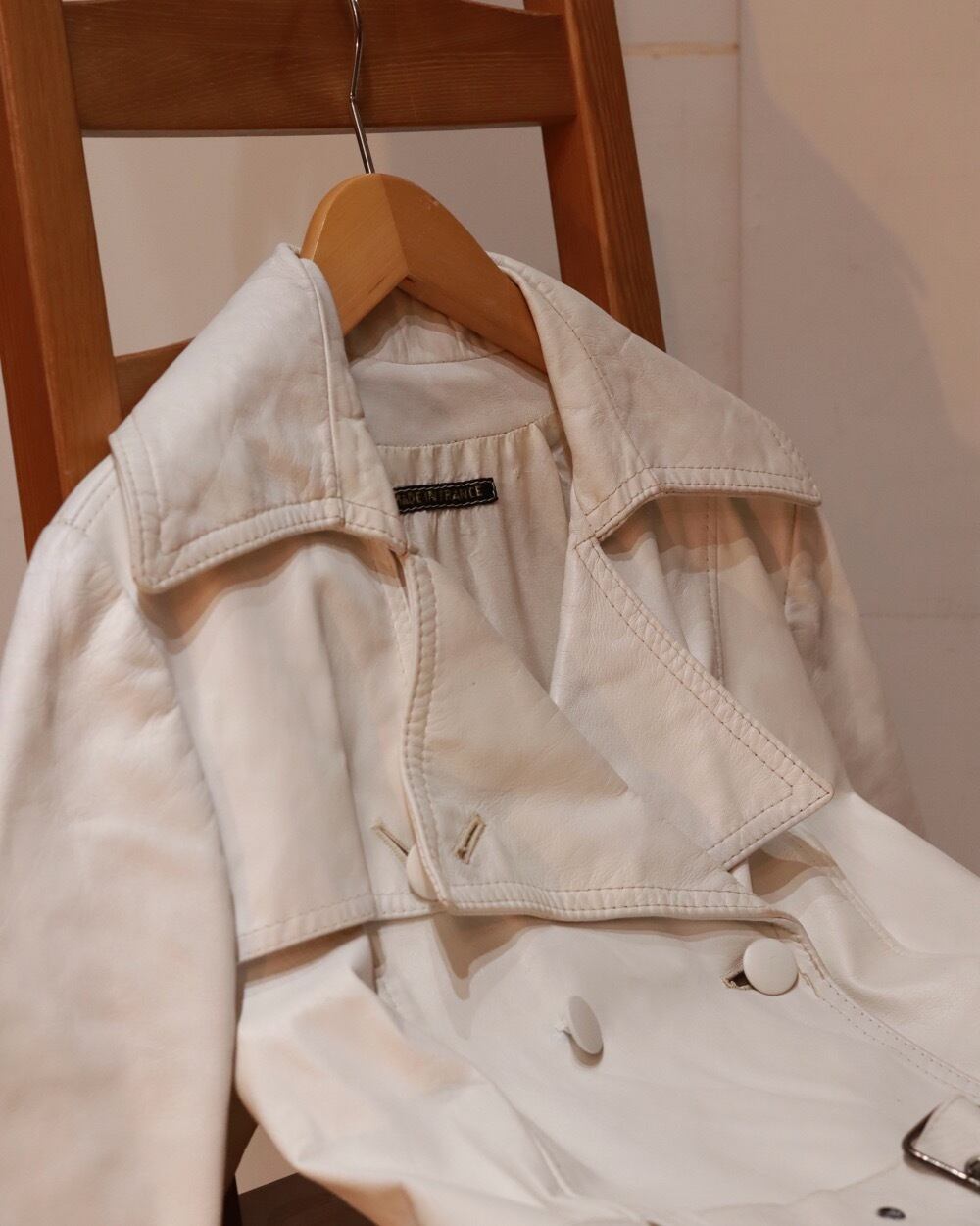 60s~70s white leather trench coat