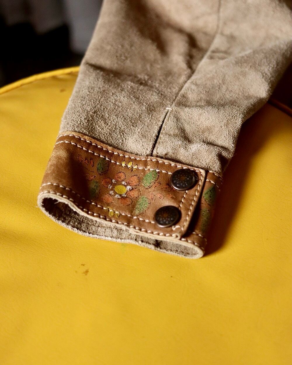 70s hand paint suède leather jacket