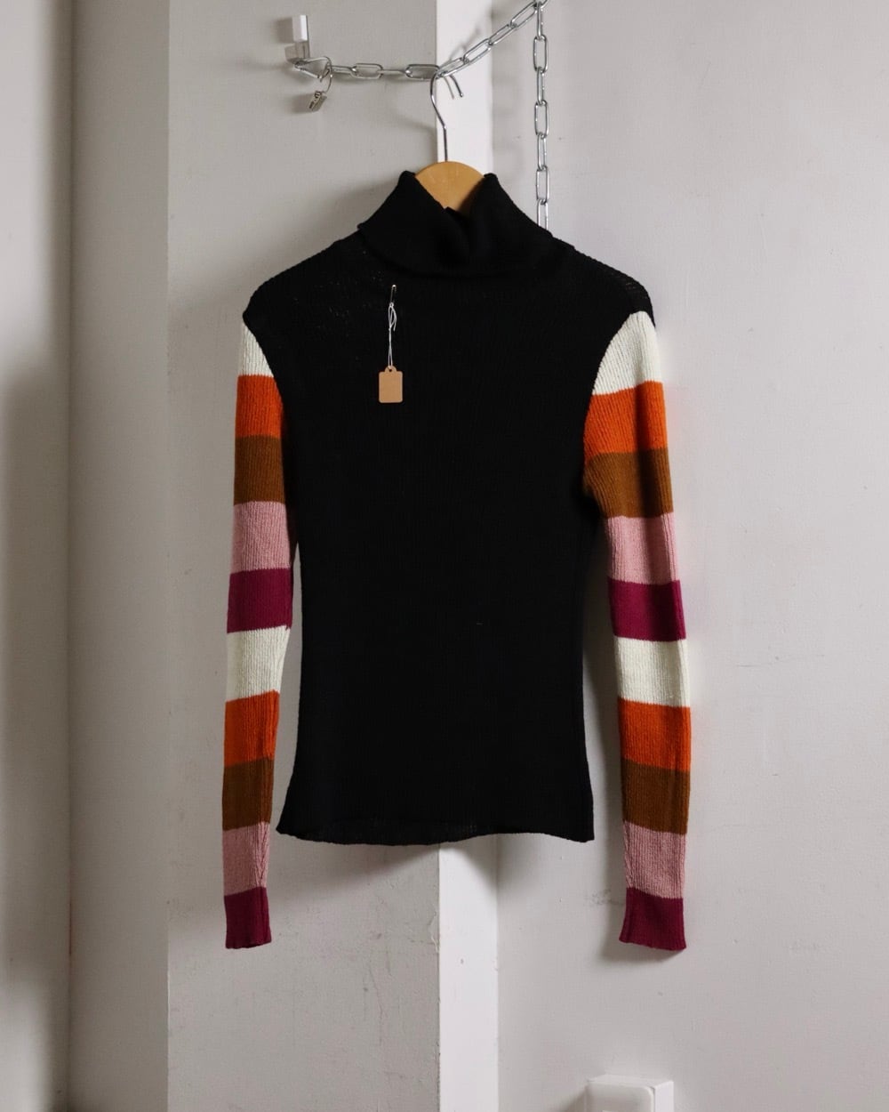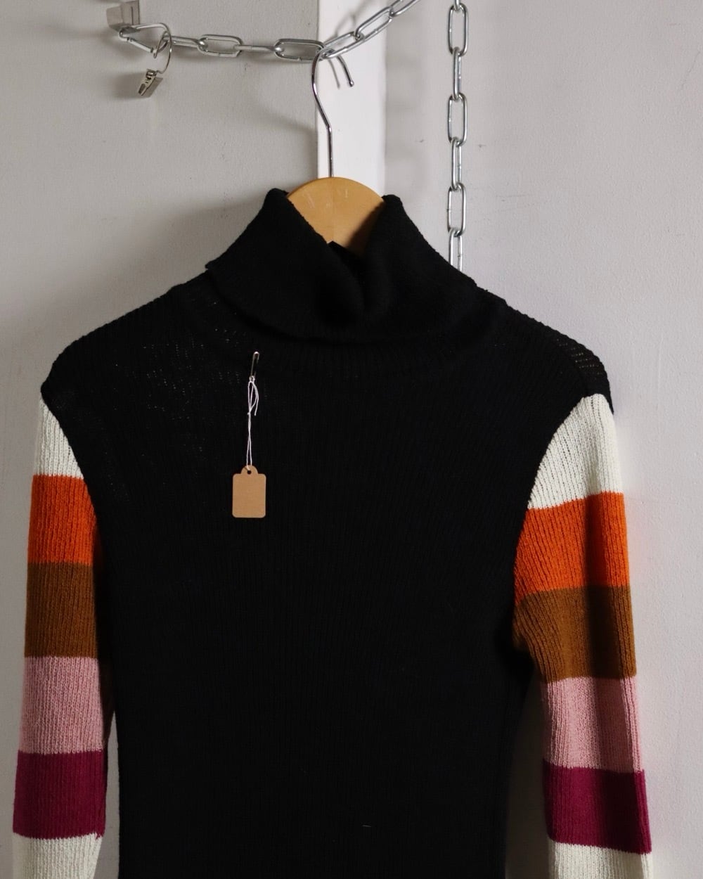 70s boardered High neck knit / Italy